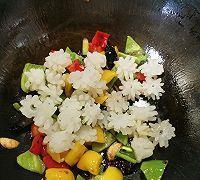 用料 尖椒1个红黄彩椒1/4个 鱿鱼卷1袋油适量 淀粉半勺蒜2瓣 姜2片葱2根 干辣椒适量生抽2汤匙 醋适量酒适量