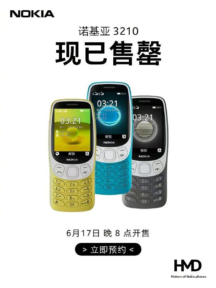 不过,当诺基亚 3210 复刻版再次推出市场,消费者们还是 " 真香了 ",5 月以来其先后上架四次,均快速售罄。