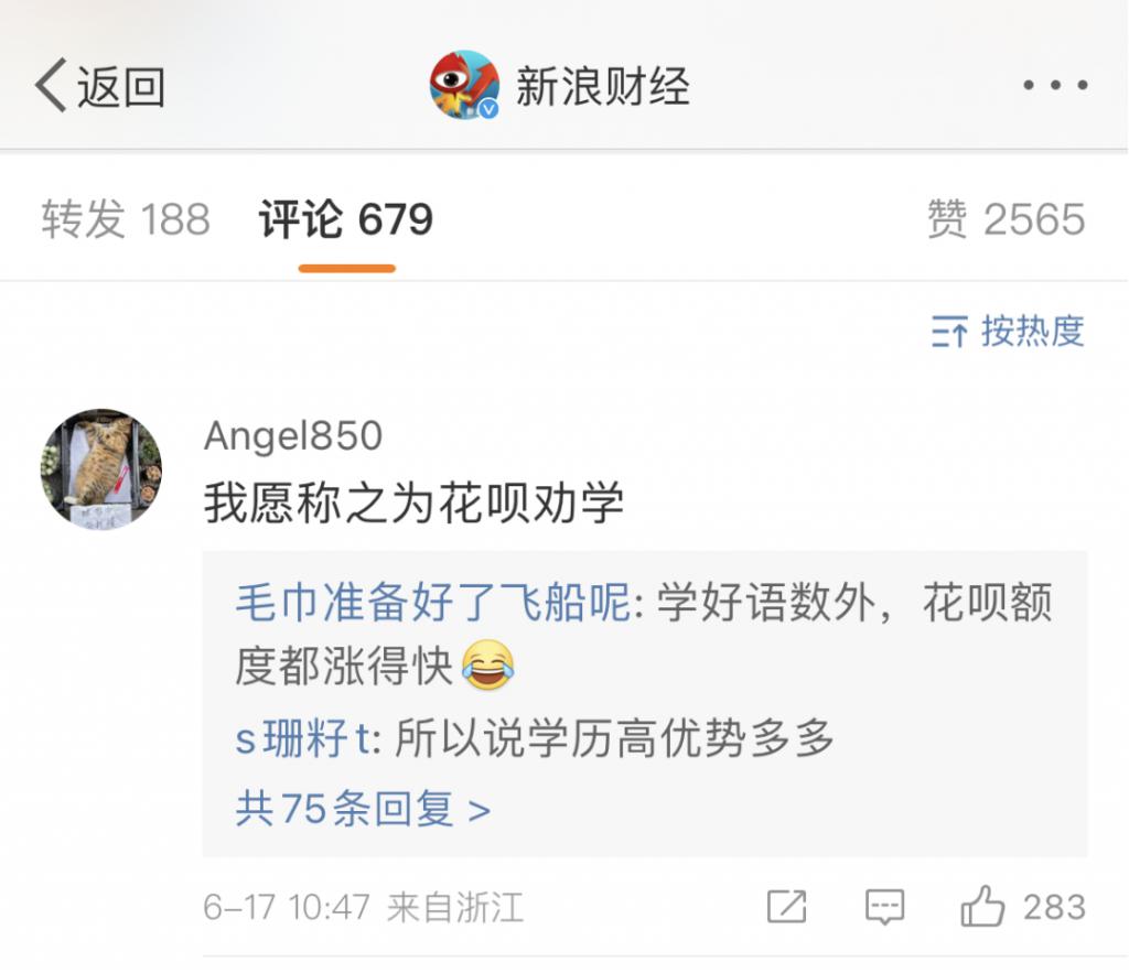 消息一出,不少人跃跃欲试,更有热评表示:" 我愿称之为花呗劝学 "" 学好语数外,花呗额度都涨得快 "。