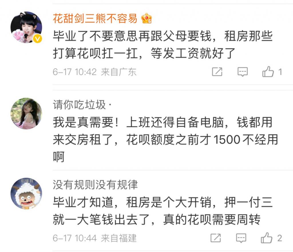 有网友表示," 都是社会人了,一下好多要用钱的地方,花呗额度多点,不一定用,但心里有底。"