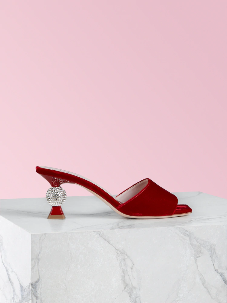 Vivier Marlène Strass 钻扣天鹅绒穆勒鞋