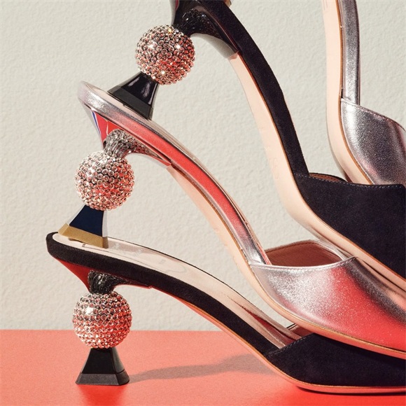 这双鞋的价格高达五位数,贵在手工镶嵌的施华洛世奇水晶饰扣,真材实料的东西,必然会有一个沉重的价格。