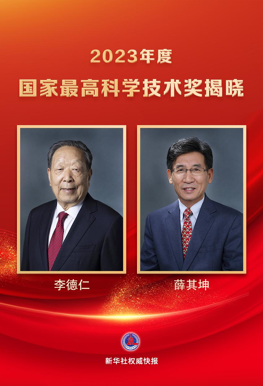 2023 年度国家最高科学技术奖 6 月 24 日在京揭晓,李德仁院士、薛其坤院士获得中国科技界崇高荣誉。