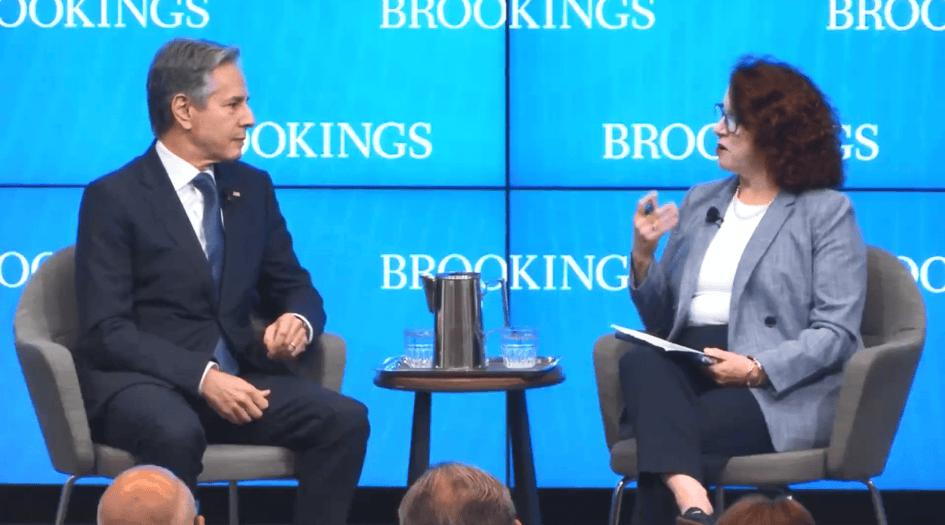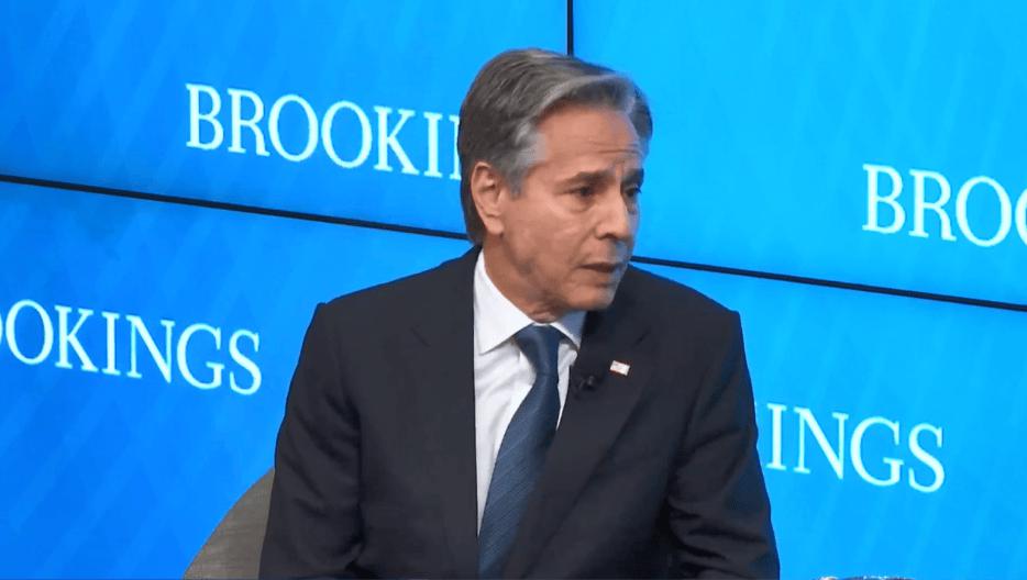 当地时间 7 月 1 日,布林肯出席布鲁金斯学会主办的美国外交政策对话会(视频截图)