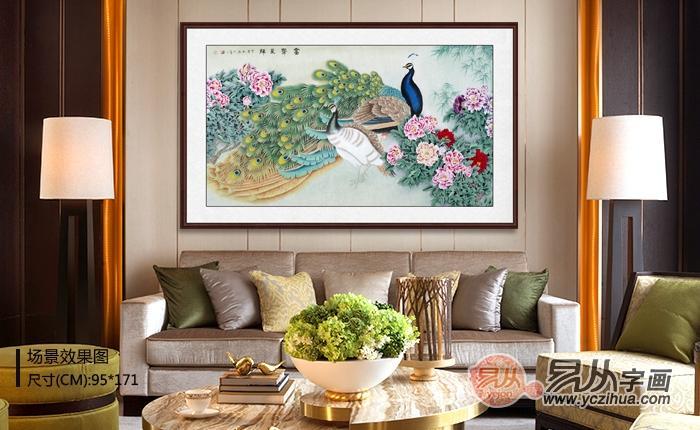 客厅既是我们家人团聚的场所,也常用来招待客人,客厅的面积较大,尤其是墙壁如果不挂一幅画,就会显得非常单调。客厅的挂画应以大气、高档、温馨为主,这幅寓意富贵呈祥的牡丹孔雀图就非常合适。俗话说“孔雀落谁家,谁家就富贵”,再加上招财纳福的牡丹,这幅作品定能让你的生活越来越富有~迦 V yczihua168