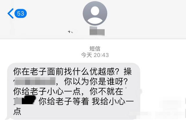 该网友晒出的短信显示,这名快递员让其 " 小心 " 一点,还称 " 你不就在 xx,你给我等着 "。