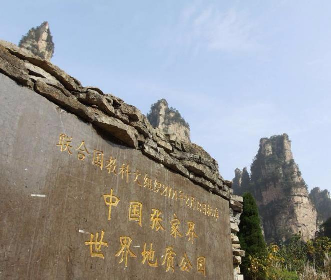 湖南张家界张良墓位于武陵源金鞭溪柏柳岩下。这是张家界重要的人文景观之一。相传,汉留侯张良在西汉江山奠定后,便隐匿于武陵源,并葬于此地。图为离张良墓不远处,刻着“联合国教科文组织2004年2月13日批准 中国张家界世界地质公园”字样的巨碑。