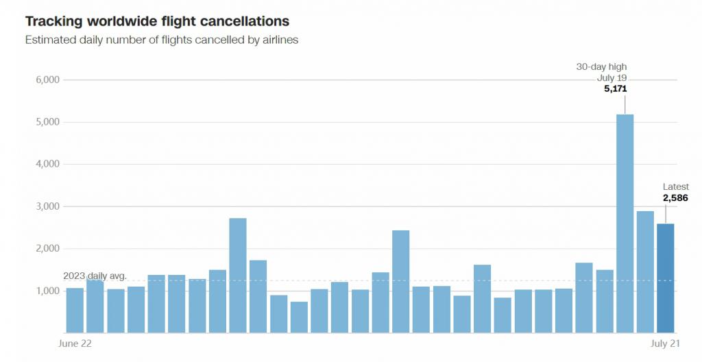 从上周五至周日,全球航班取消数量大增