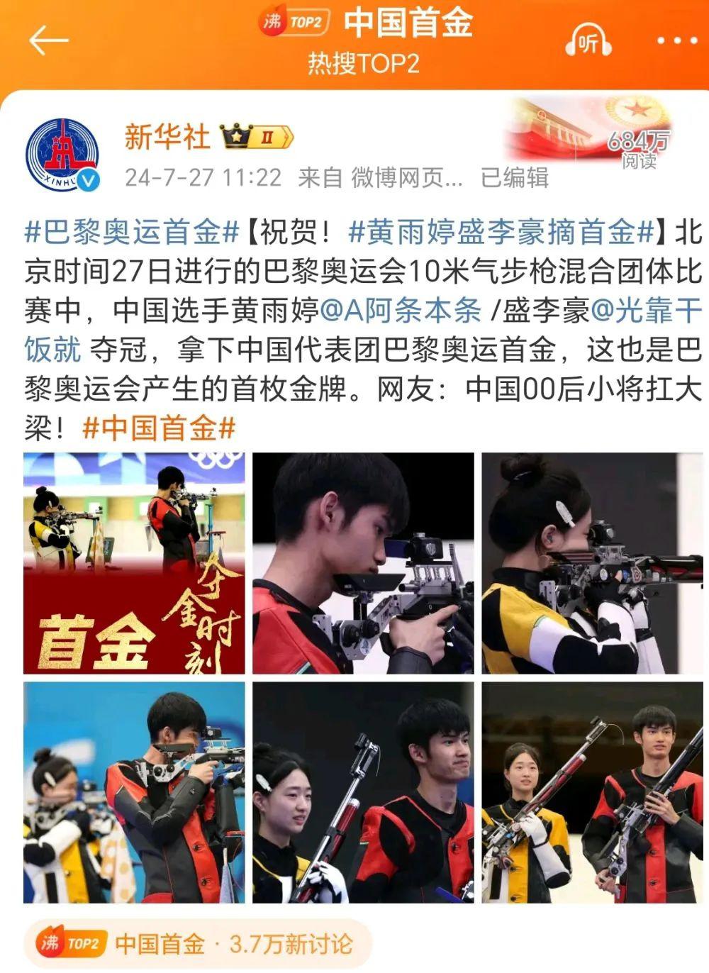 巴黎奥运会首金,诞生!
