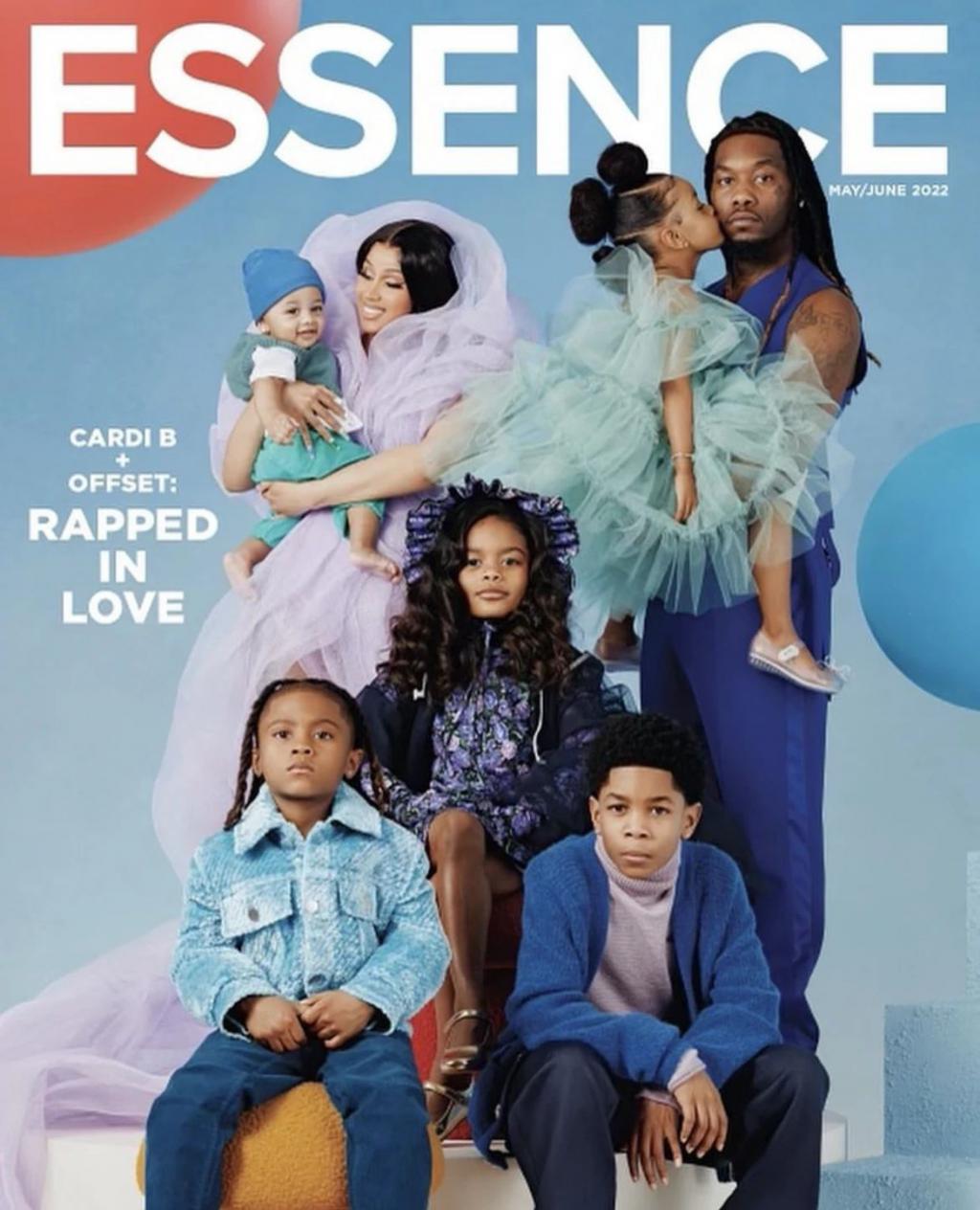 卡姐一家七口照片,前排是 Offset 与前女友们所生的三个孩子。