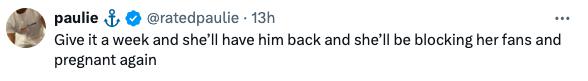 再过一周,她就会叫他回来,不顾她的粉丝然后再次怀孕。