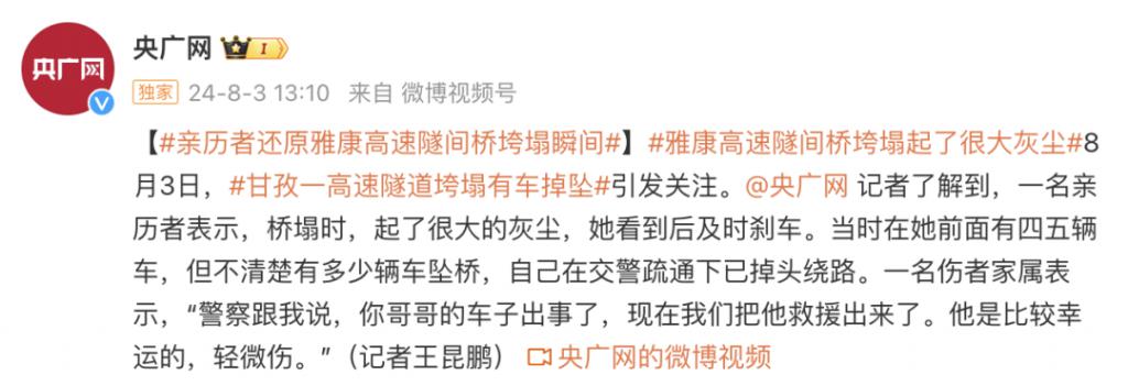 3 辆车掉坠 5 人失联!雅康高速隧间桥垮塌,亲历者发声——