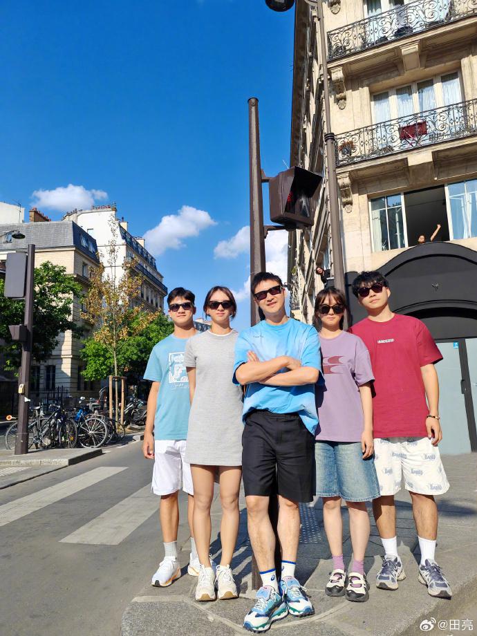 8 月 3 日,田亮在社交平台晒出自己与孩子和工作人员的合影,并配文:别说,还挺像!辟谣带儿子女儿卖货。