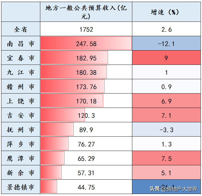 江西财政:收入超1700亿,南昌、景德镇负增长,宜春总量第二,增速第一