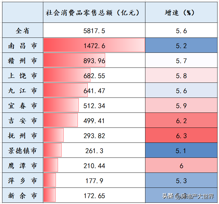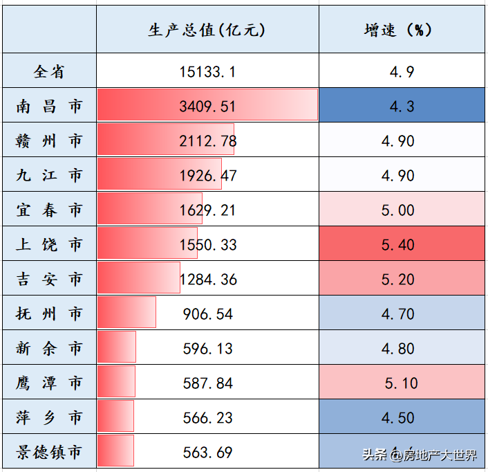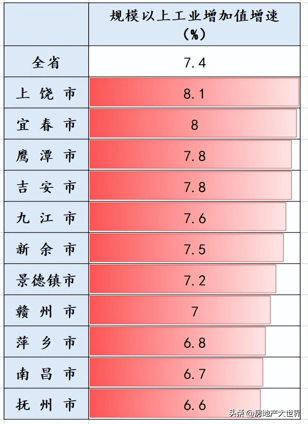 此外,鹰潭、吉安、九江、新余等城市的增速也超过了7%。
