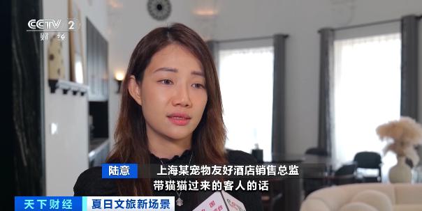 上海某宠物友好酒店销售总监 陆意:我们准备了猫砂、猫玩具,还有饮水机、零食等。针对上博 " 奇喵夜 " 带猫过来的客人,我们还可以相应地减免清洁费用。