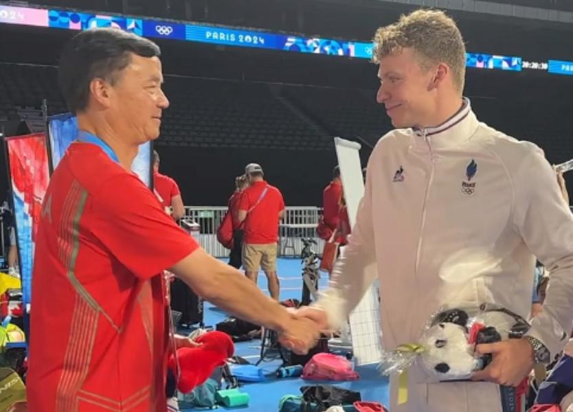 法国4金选手再次上门道歉,向中国教练解释并合影:双方互送礼物