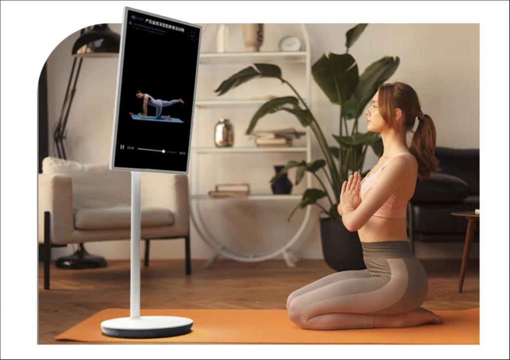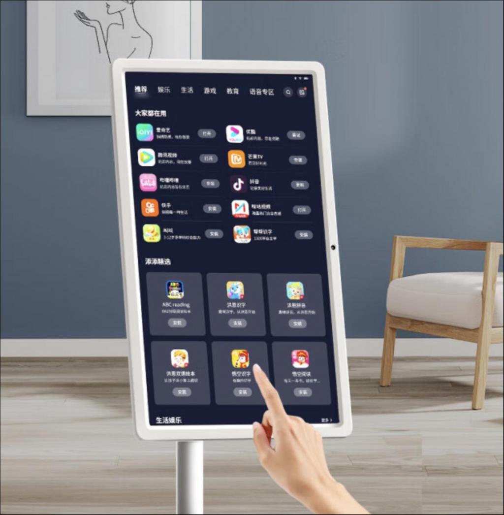 从产品层面来看," 闺蜜机 " 可以简单理解为一个超大号的平板电脑和一个底部带有滑轮的支架的组合。屏幕尺寸一般在 20-32 寸左右,分辨率大多为 1080P 或者 4K,与一般的显示器或者小尺寸电视相当。