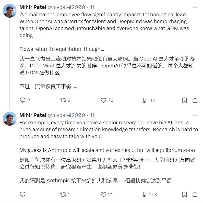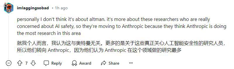 有网友认为,高级研究员的离开意味着技术的离开,对现阶段 OpenAI 员工外流的现状表示担忧。而吸纳 OpenAI 众多元老员工的 Anthropic,可能会成为下一个技术领先的公司。