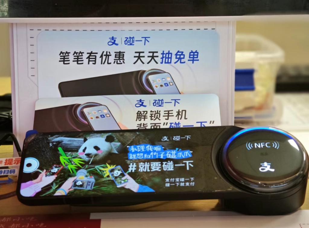 " 这应该是目前市面上最好看的一款支付机具了。" 用户们发现,与传统收费机具不同的是," 碰一下 " 机具整体小巧轻便,还搭载了一块 6.5 寸的高清屏,可随时切换屏显画面。比如在成都市场,当大熊猫、搓麻将、喝小酒、吃火锅等地域特色元素出现在 " 支付宝碰一下 " 海报或屏幕上时,深刻的情感连接显著增强了用户与 " 碰一下 " 的互动吸引力。