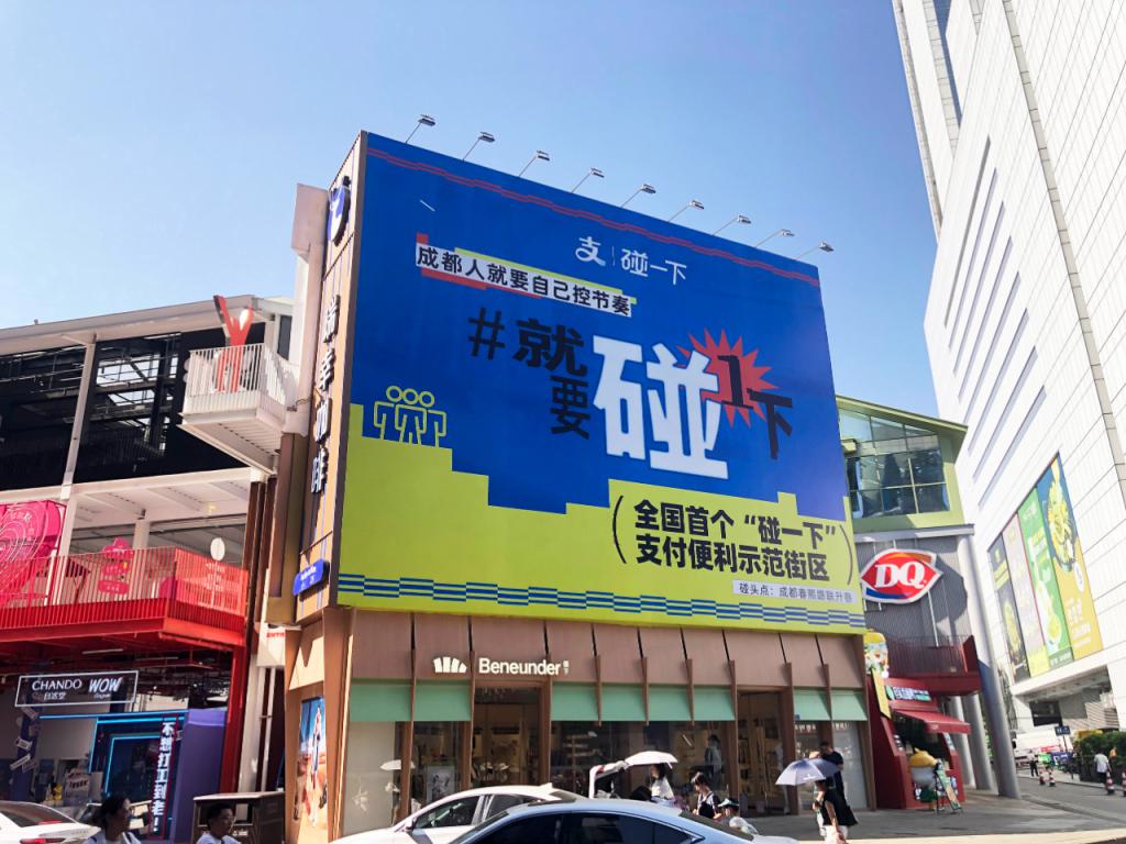 除了品牌和商家,城市也在纷纷加入合作。其中,成都春熙路步行街作为时尚 Icon,也已正式推出全国首条 " 碰一下 " 支付便利示范街区。