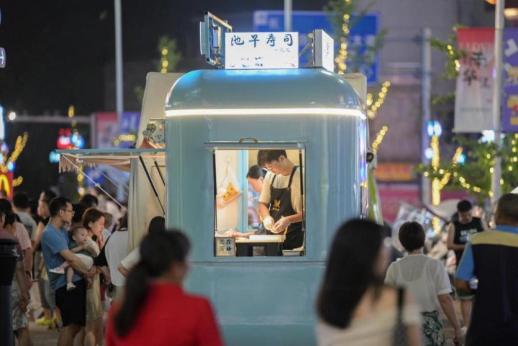 小龙虾、臭豆腐、烧烤、炒冷面、鲜榨果茶、新中式茶饮…… 9 月 5 日 18 时许,位于衡阳陆家新区的雁鸣溪夜市人气渐旺,100 余家商铺陆续出摊,各色美食琳琅满目。夜幕降临,烟火升腾、人潮涌动,一幅幅热闹的夏季夜生活画卷铺展开来。