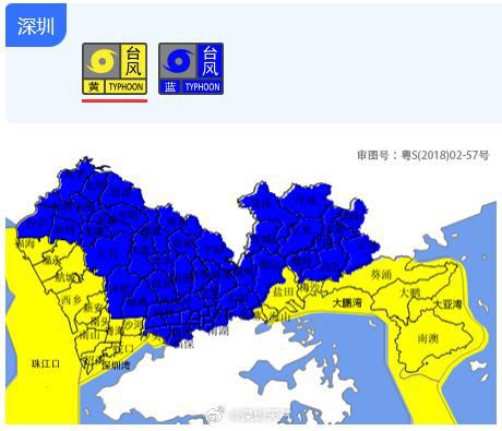 另据 @深圳天气消息,深圳市分区台风蓝色预警信号升级为黄色。深圳市气象台 9 月 5 日 19 时将盐田区、大鹏新区、珠江口、深圳湾、大鹏湾、大亚湾、南山区(南头、南山、沙河、蛇口、招商、粤海街道)和宝安区(福永、西乡、新安、航城、福海街道)台风蓝色预警信号升级为黄色。