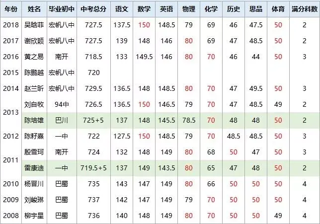 首先为大家揭晓的是2008-2019年这十年来重庆市的中考状元们!