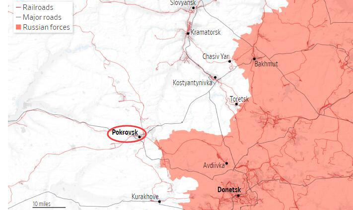 自今年 2 月夺取工业城市阿夫杰耶夫卡以来,俄军已通过占领村庄持续向西部推进。最近几周,他们加快了推进速度,现在距离曾经有 8 万人居住的城市波克罗夫斯克,已只有几英里的距离。