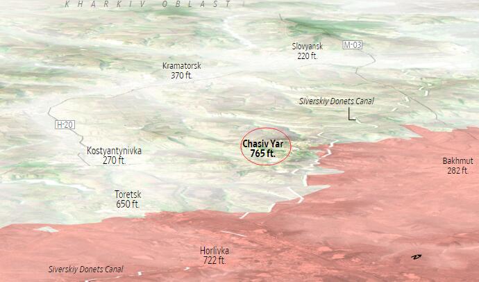 事实上,从上面的地图中其实就不难看出,红军城一旦丢失,可能会在俄军长期以来一直试图攻占的高地——恰索夫亚尔地区,乌军失去一条重要的补给线,并可能令后者沦落到被 " 包饺子 " 的命运。