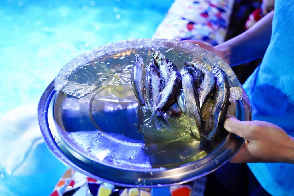 除了特制月饼,保育员还为白鲸加餐了美味的多春鱼,主打一个营养均衡 + 健康饮食。
