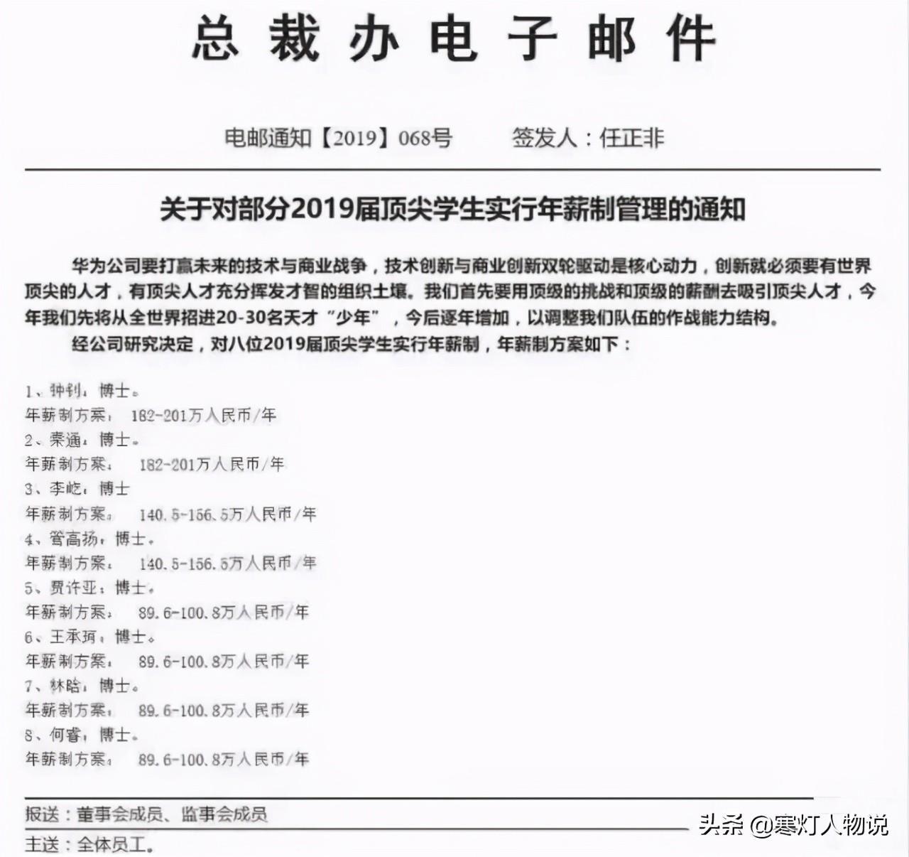 2019年7月23日,华为由任正非签发的总裁办电子邮件。这封电邮显示,华为在19年将从全世界招20-30名天才“少年”,往后每年增加,调整队伍作战能力。