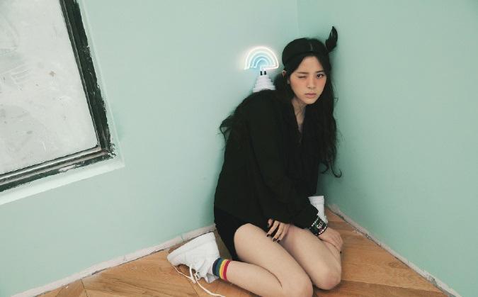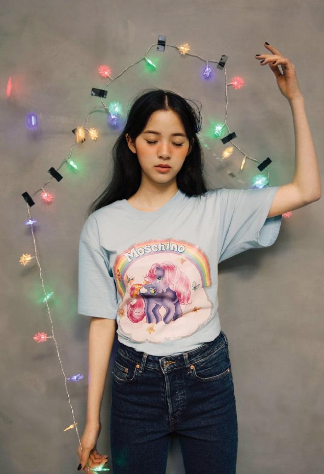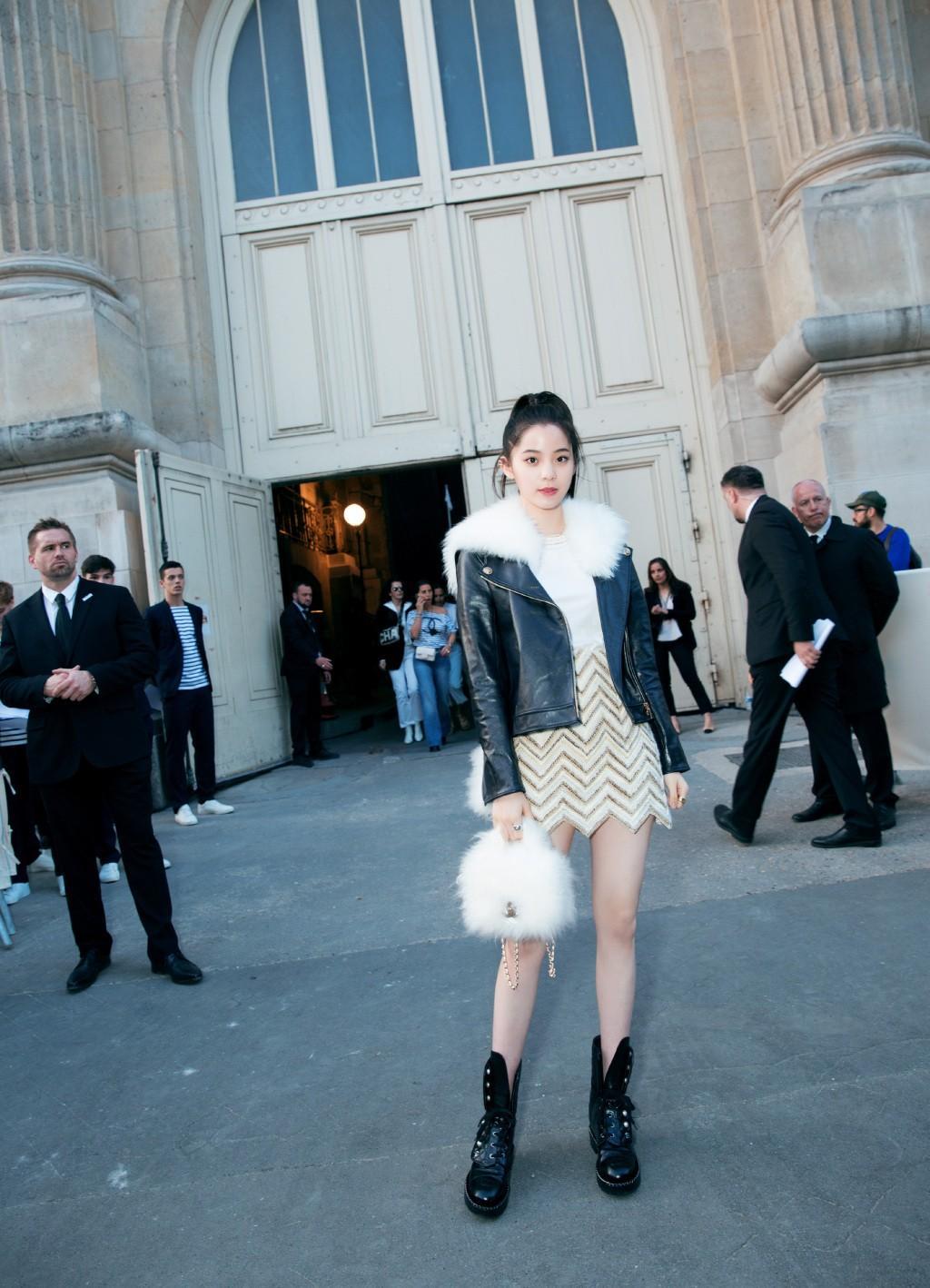 这样的造型看上去似乎游戏奇怪,看上去似乎是运东系的风格,但是白色的高跟靴却显得有些文雅,说不清到底是属于哪一种的风格,像是混搭。