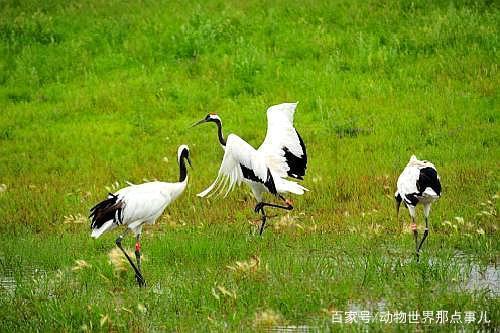 3.丹顶鹤的学习和适应能力十分强,刚出生几天的小丹顶鹤就可以自己寻找食物进食,三个月左右就能够学会飞翔。