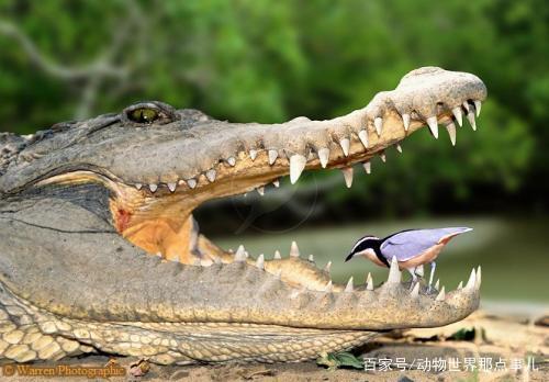 4.不同种类的动物也能够亲密无间地合作。千鸟不但可以在鳄鱼的背上寻找小虫吃,还会进入鳄鱼的口腔找东西吃。有时鳄鱼不小心把嘴闭上 千鸟就被关在里面。但是只要千鸟用啄轻轻敲打鳄鱼的上下颚,鳄鱼就会马上张开嘴让千鸟飞出来。
