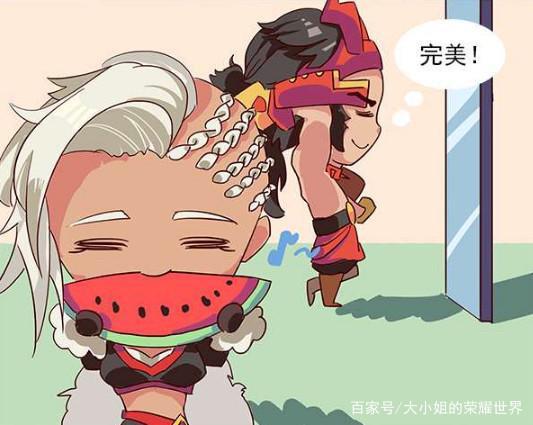廉颇一边照镜子,一边哼着小曲,好像很满意镜子里的自己,只见他对这镜子比了一个赞,然后自豪的说道:“我这辈子就没见过比我还帅的人!”廉颇越看越开心,然后就问在吃西瓜的老婆钟无艳:“老婆,你说我说的对吧,整个峡谷是不是我最帅,哈哈哈……”钟无艳差点就被西瓜给呛到,直接把一口西瓜喷的老远!