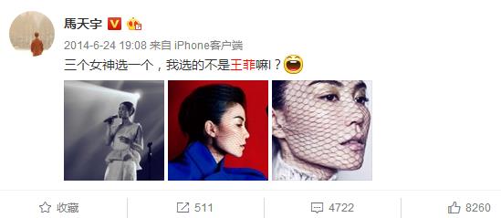 而马天宇的微博从2010年开始就有关于王菲的微博,一直到2016年那么多年也是不容易啊!
