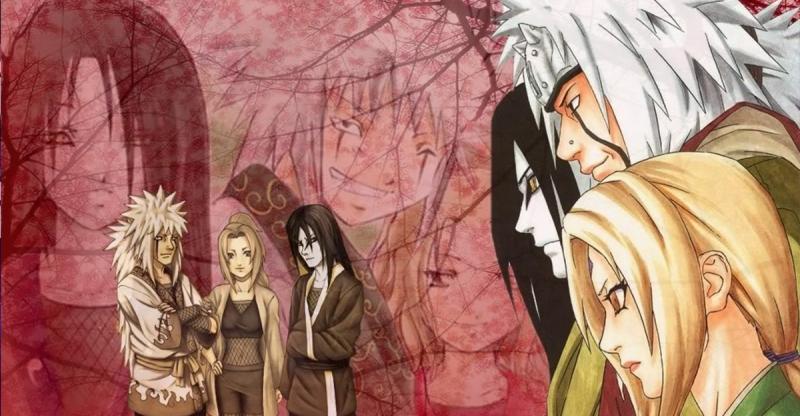 成员对象:蛤蟆仙人自来也,怪力婆婆纲手,忍界科学家大蛇丸
