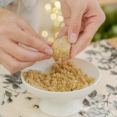 4、打成细腻的核桃粉。 其他坚果粉也可以。坚果粉仅仅是作为装饰,不加也没有问题。