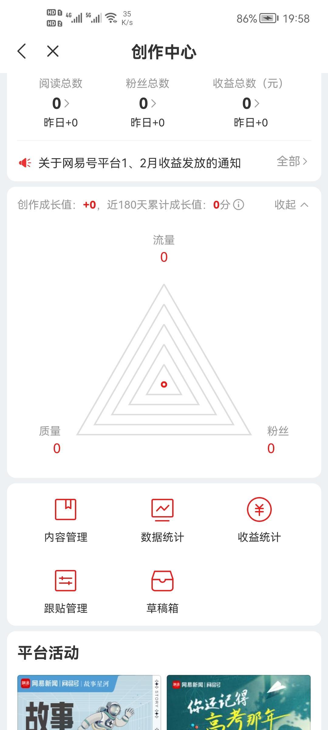 6.网易号,网易号有等级。1级账号开始有收益,进入3级就可以参加亿元自媒体奖励计划奖金