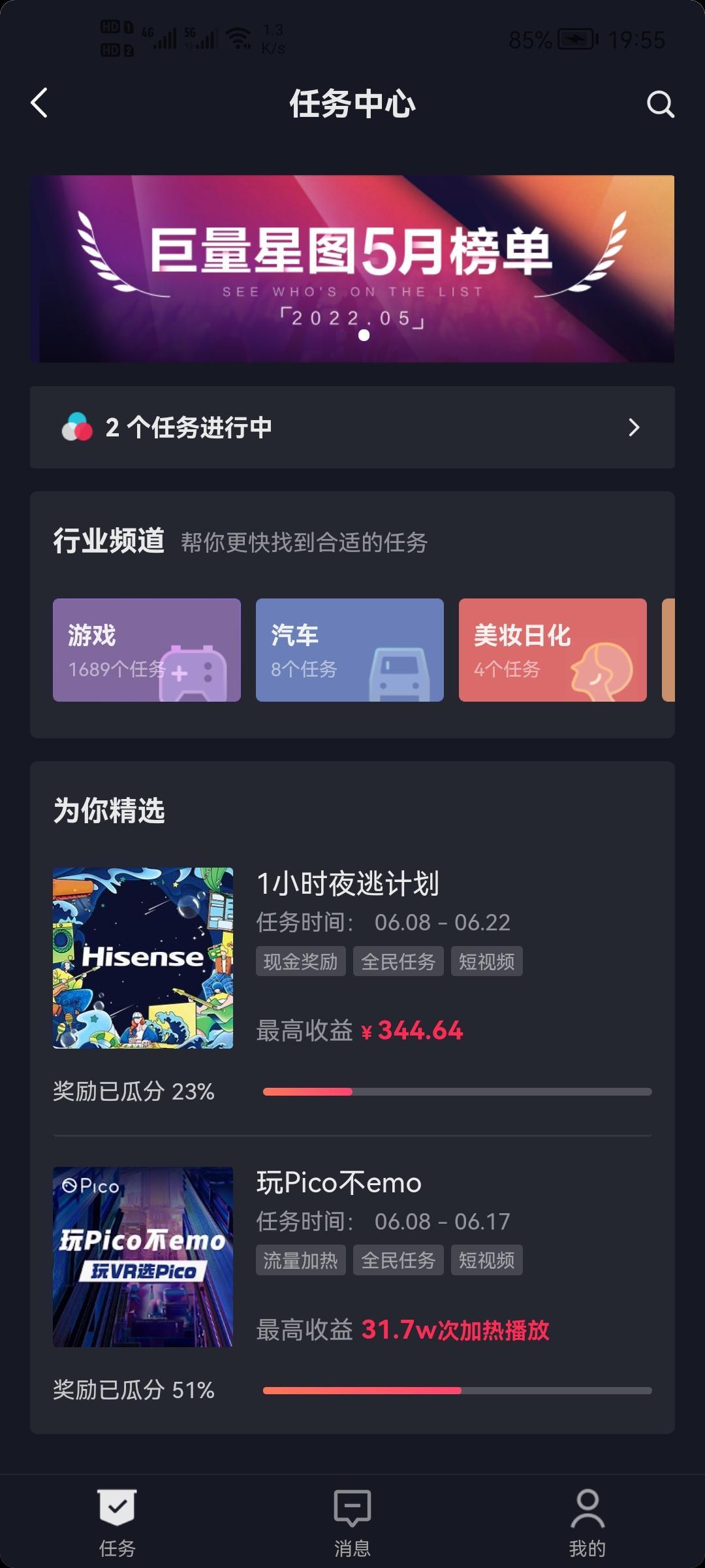 4.抖音,抖音有很多种方法变现。还没有变现渠道,抖音后台有各种全民任务,有人点链接就有收益。