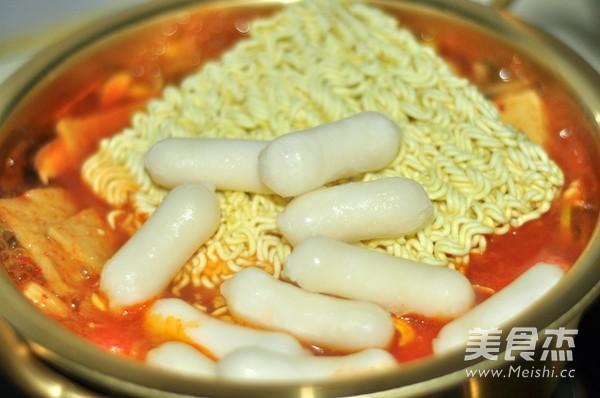 再加入方便面、芝士年糕,煮3分钟