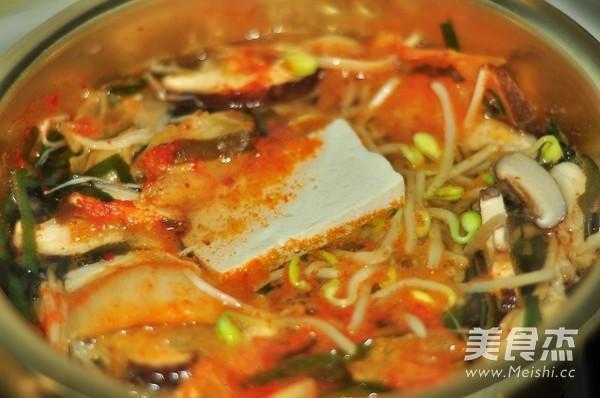 再放入豆腐、豆芽、泡菜煮10分钟入味