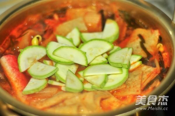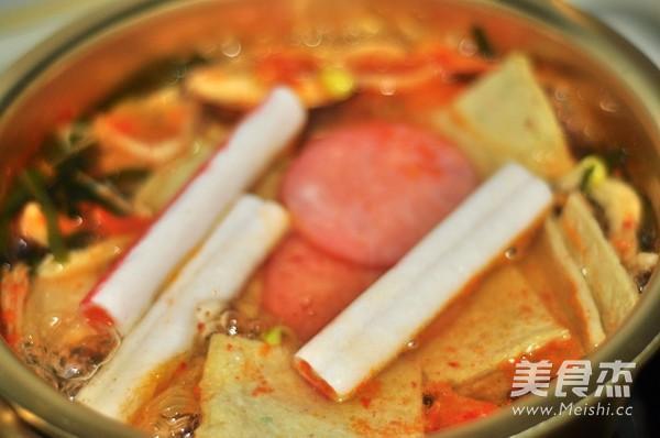 辅料盐适量黄豆芽1小把蟹棒适量牛肉卷适量海带丝适量韩国泡菜适量韩国辣椒酱2勺香油几滴鸡粉1/2勺胡椒粉1/4小勺甜不辣2片