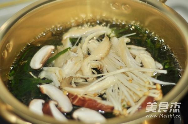 放入平菇、香菇、金针菇,煮5分钟至蘑菇变软