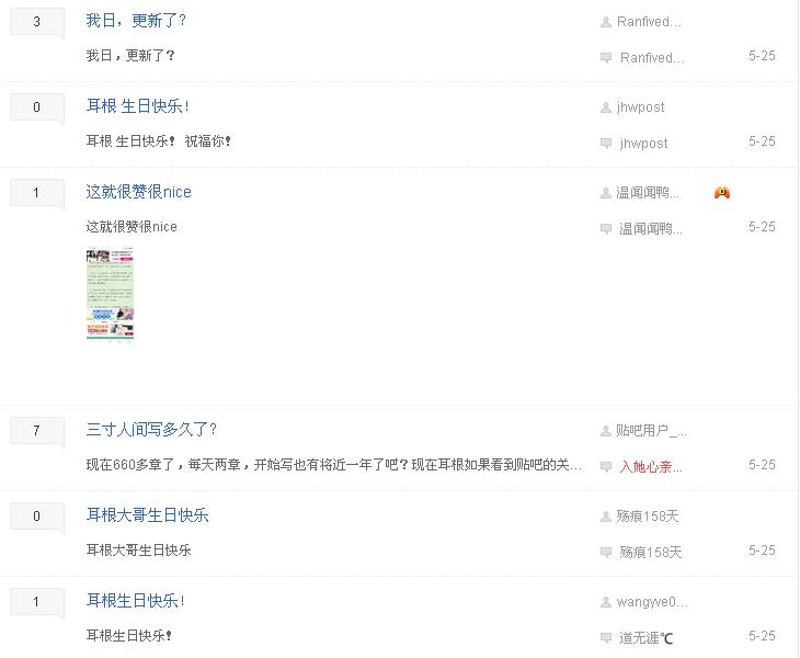 这是耳根大大发表的文章,在25号耳根生日的时候发表了更新,虽然只有一章,但是也让大家感受到了耳根并没有放弃,并且当天在三寸人间的贴吧里引起了很大的反应,通过贴吧也能看出耳根很受读者的喜爱,有很多人在当天发出了对耳根的生气祝福。