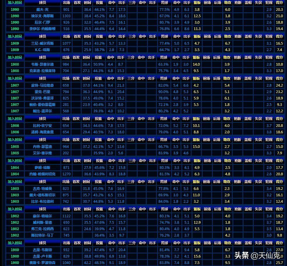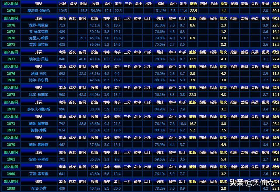 下面是小编整理的截止到2018年,以球员身份入选名人堂的1258位巨星生涯最全面数据,值得收藏。