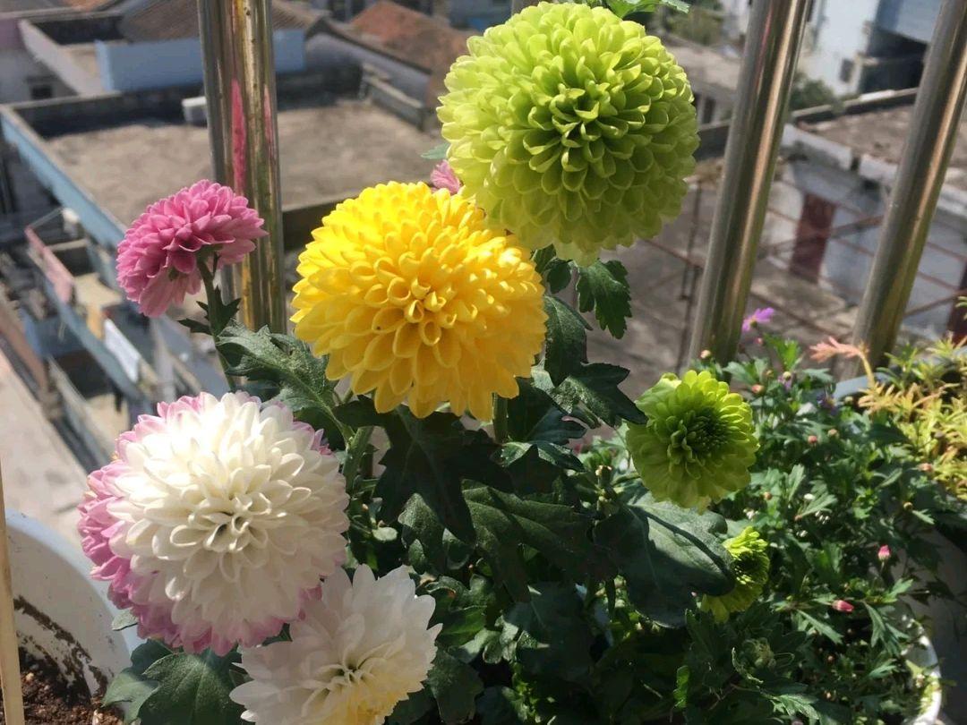 乒乓菊属于菊科的一种,花的外形酷似乒乓球,有红黄白绿等多种颜色,乒乓菊原产自日本,既可以作为绿植装点阳台,又可以将花枝剪下作为鲜切花。乒乓球的花期长达20多天之久。