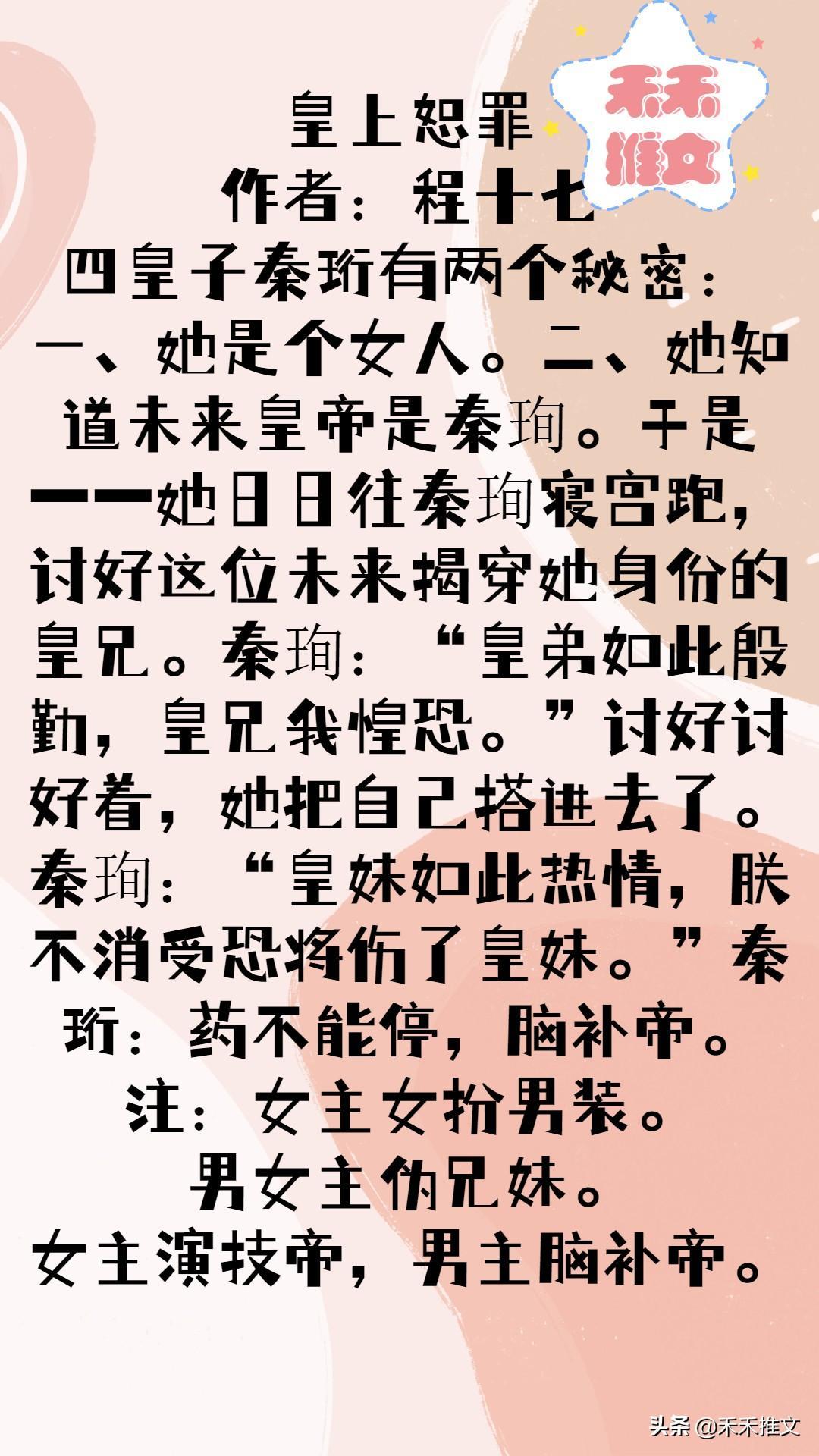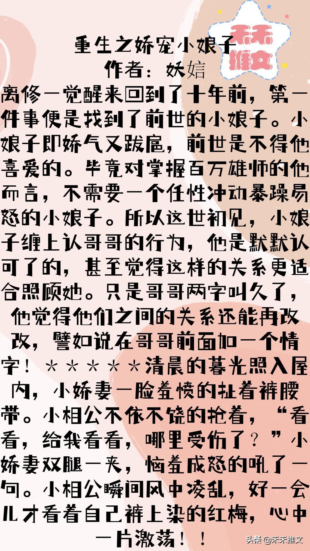 如果喜欢这一类型小说的朋友们没有看过之前的文章,可以搜索关键字“伪兄妹”、“骨科”、“伪骨科”、“古言”、“古言重生”等关键字查看禾禾之前的相关文章哦!