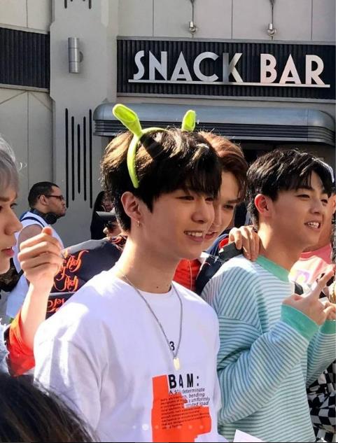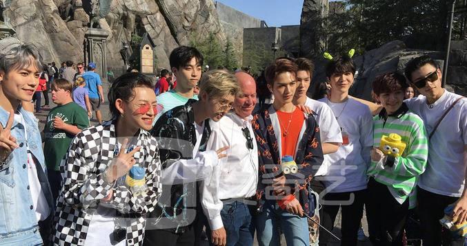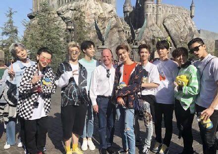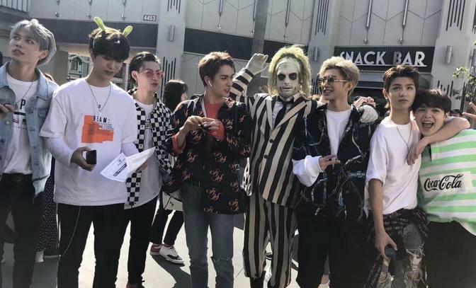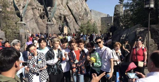 看完上面几组他们的几组机场照,我们再来看看几组他们九人团同游洛杉矶环球影城的合照吧